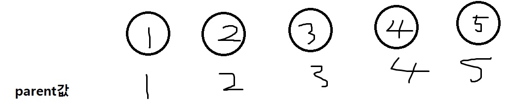 //parent배열을 인덱스와 값을 동일하게 초기화(자기자신이 부모값이됨-연결되오있지 않음)