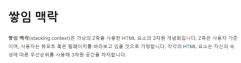 쌓임 맥락(Stacking context)란?