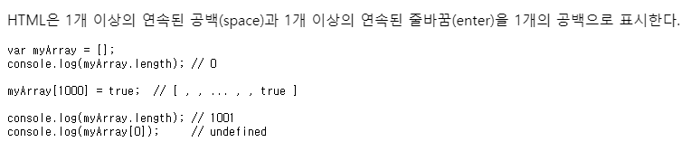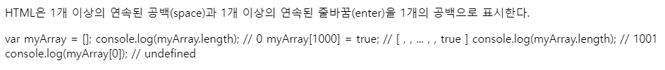 <p>HTML은 1개 이상의 연속된 공백(space)과 1개 이상의 연속된 줄바꿈(enter)을 1개의 공백으로 표시한다.</p>
