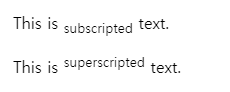 sub 태그는 subscripted(아래에 쓰인) text를 sup 태그는 superscripted(위에 쓰인) text를 지정한다.