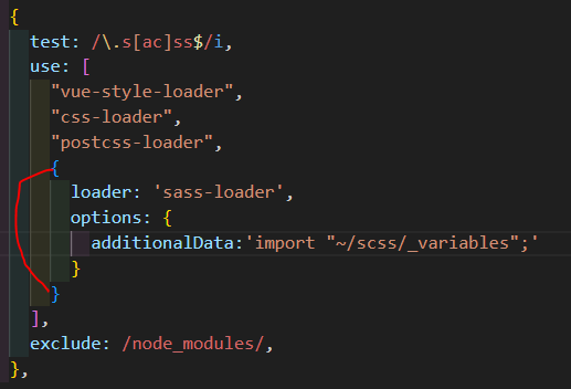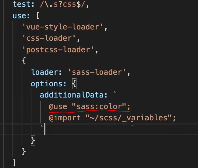 2. 아래와 같이 import를 생략할 scss파일을 명령어로 additionalData에 추가해줌