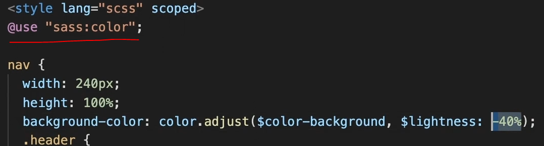 - @use를 통해 color 모듈을 사용하려고 했는데 아래와 같이 에러가 뜬다!