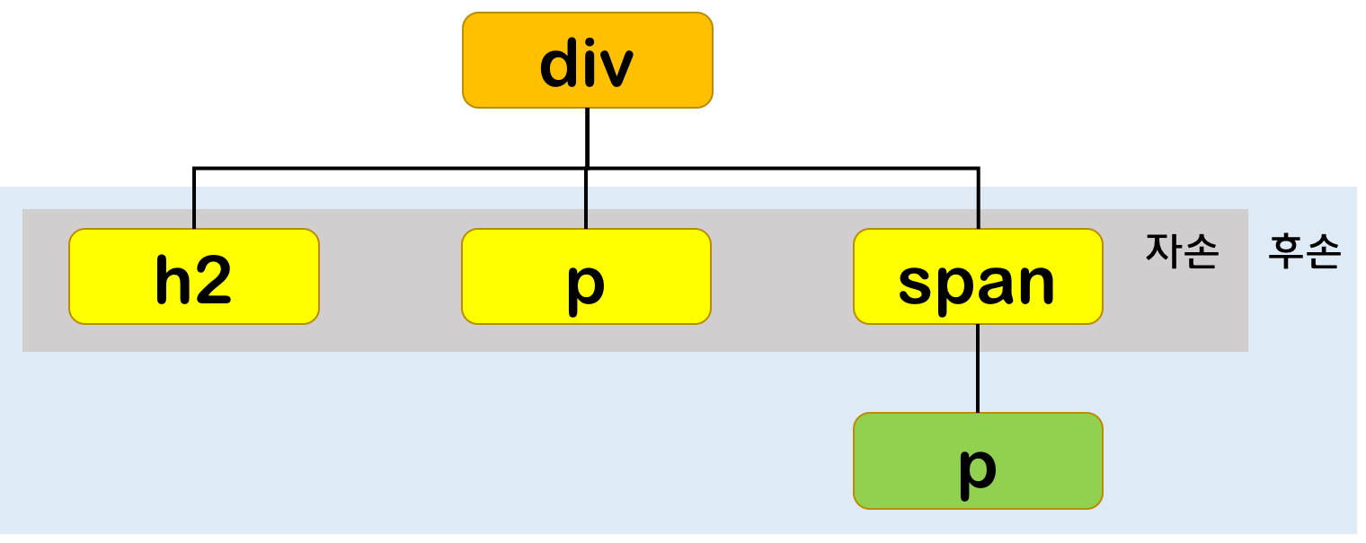 자신보다 n level 하위에 속하는 요소는 후손 요소(하위 요소)라 한다.