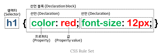 style을 적용하고자하는 HTML 요소를 셀렉터로 특정하고 선택된 요소에 스타일을 정의하는 것이다.