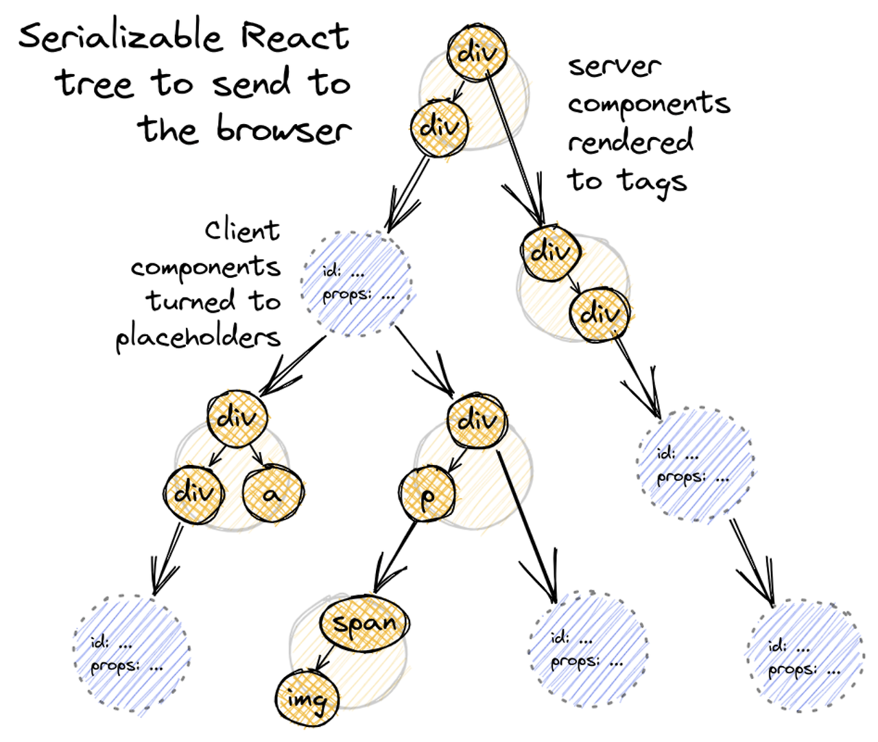 하지만 직전에 설명했듯이 RSC는 그 최종 결과물이 html이 아니라 직렬화된 스트림 형태로 데이터를 받아오기 때문에,