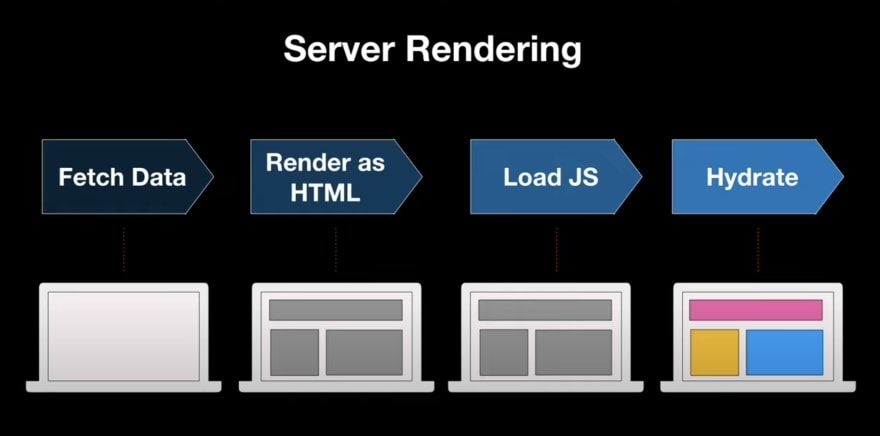 즉, 초기 로딩속도가 느리다는 CSR의 단점을 보완하기 위해 초기 로딩시에는 html파일을 SSR을 통해 빠르게 받아오고, 이와 병렬적으로 js번들도 함께 가져와서 미리 받아온 html과 병합하는 hydration과정을 거치는 것이다.
