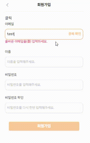 이메일은 검증 후에 중복확인 API완료라는 조건이 있었고,