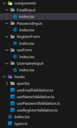그래서 처음에는 아래와 같은 파일 구조로 회원가입을 만들게 되었다