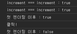 console.log('첫 렌더링 이후 : ' + (previousReferenceValue === increment)); // 첫 번째 렌더링 후 true
