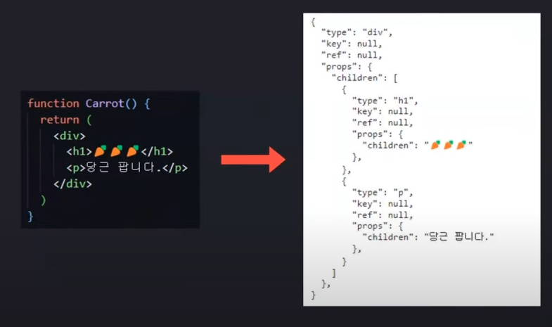 이미지에서 보이듯이 createElement라는 함수에 객체가 들어가 있는 모습이다.