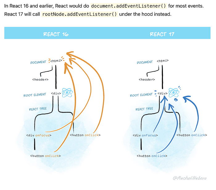 리액트에서는 onClick으로 이벤트를 등록하면 Root에 모이게 된다고 하셨는데제가 이 부분을 정확히 이해했는지 알고싶어서 질문 드립니다!