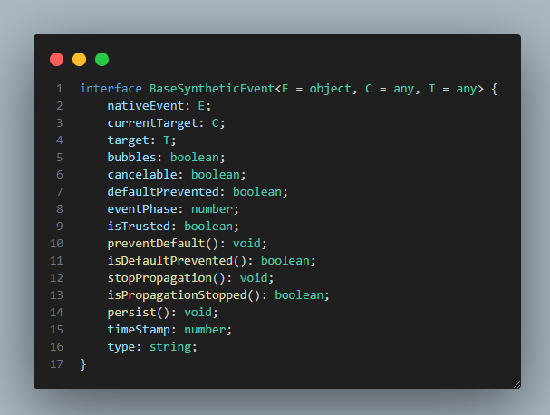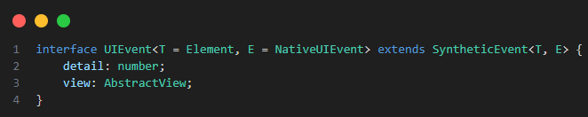 그런데 리액트 타입에는 UIEvent에서 바로 Event 타입으로 가는 것이 아닌, SyntheticEvent가 있다는 것이다.