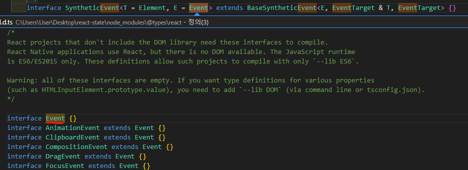 그리고 E라는 것을 따라가면 Event라는 타입을 가리키고 있다.