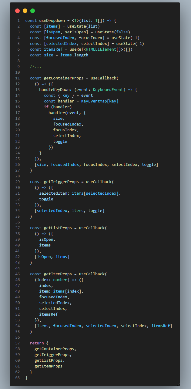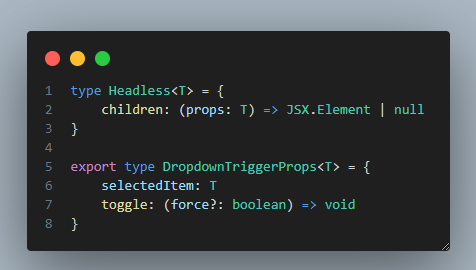 - 예를 들어: const createDropdown = <T>() => { ... }