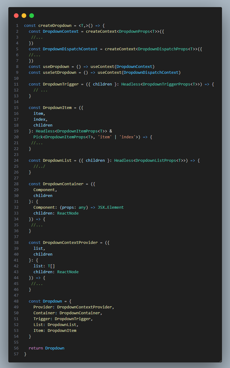 그래서 createContext에서도 제네릭을 사용할 수 있도록 createDropDown이라는 함수를 만들어