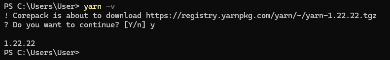 그럼 다시 yarn -v를 해서 설치되었는지 확인하면 아래처럼 뜰 것이다.