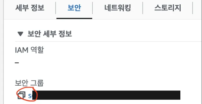 EC2 -> 인스턴스 탭에 가서 인스턴스 ID를 클릭하고, 보안 탭에서 보안 그룹을 클릭합시다