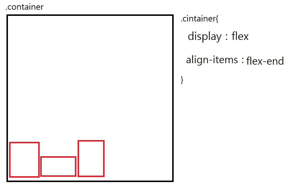 align-items: flex-end : 수직방향으로 아래쪽이 end 방향이다.