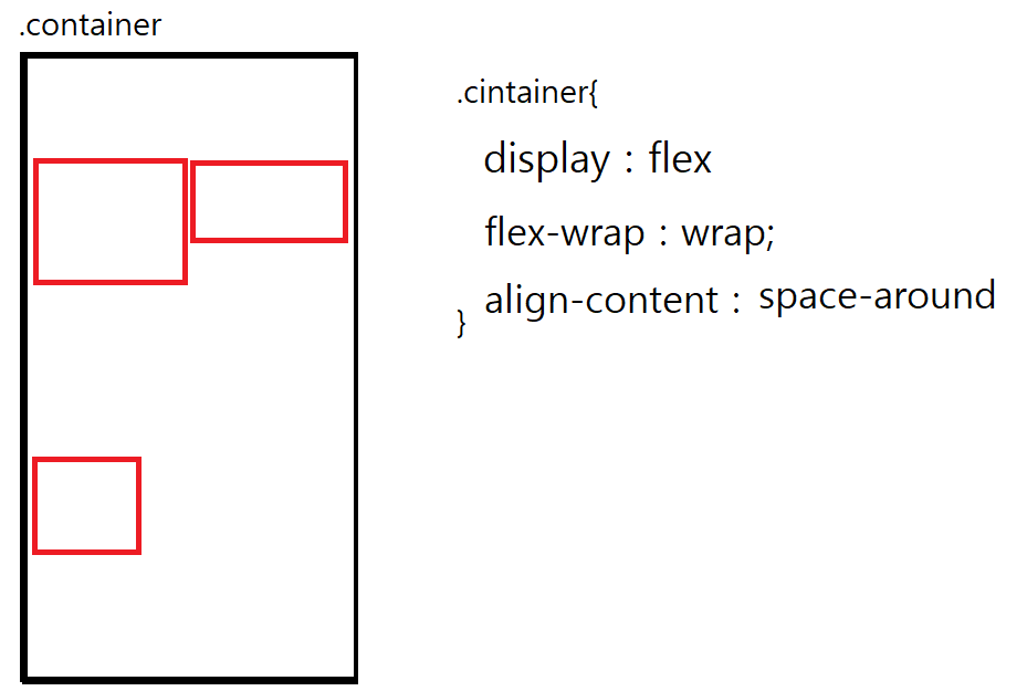 align-content : space-between : 만약 더 줄이면 한 줄로 3개의 요소가 같은 여백으로 띄워진다.