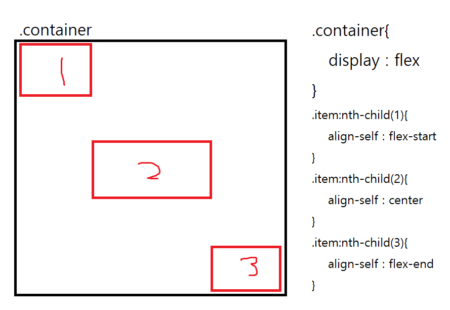 align-self를 이용해 각각 정렬을 줄 수 있다