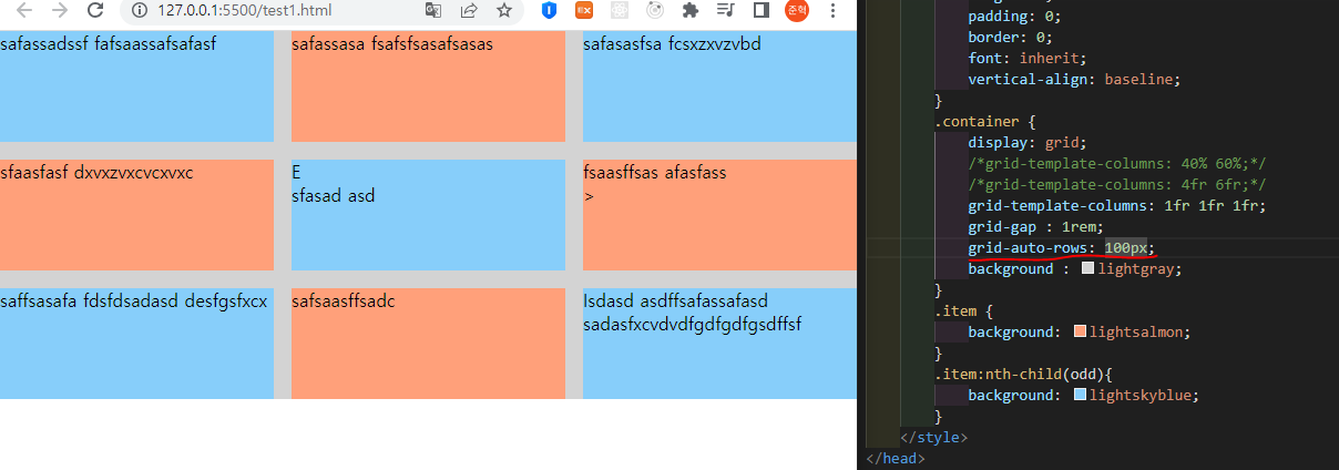 -현재 브라우저를 키우면 모든 grid가 늘어났다 줄어들었다 한다.