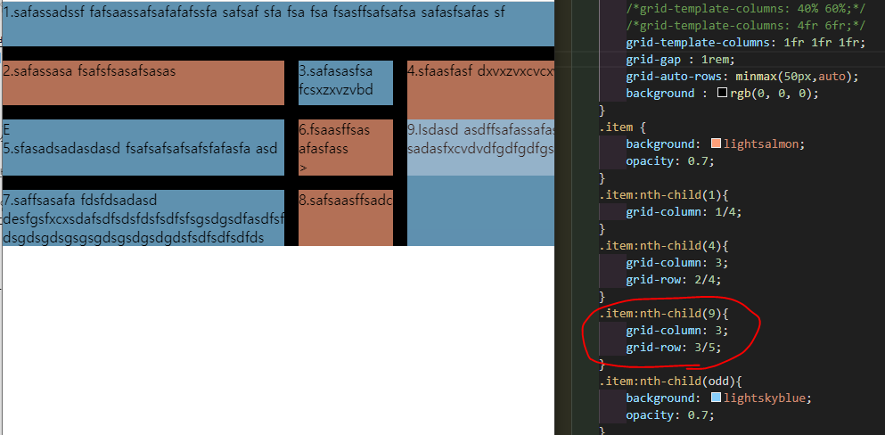 아까 해결했던 것처럼 grid-columns : 3을 줘서 3번에 위치하게 하면 됩니다.