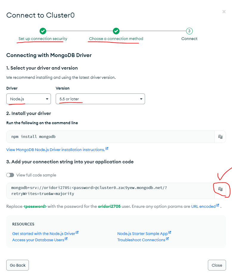 여기에 아까 복사한 몽고DB주소를 넣어준다.