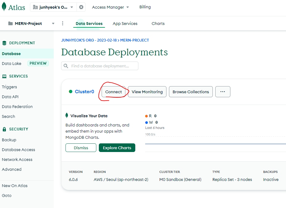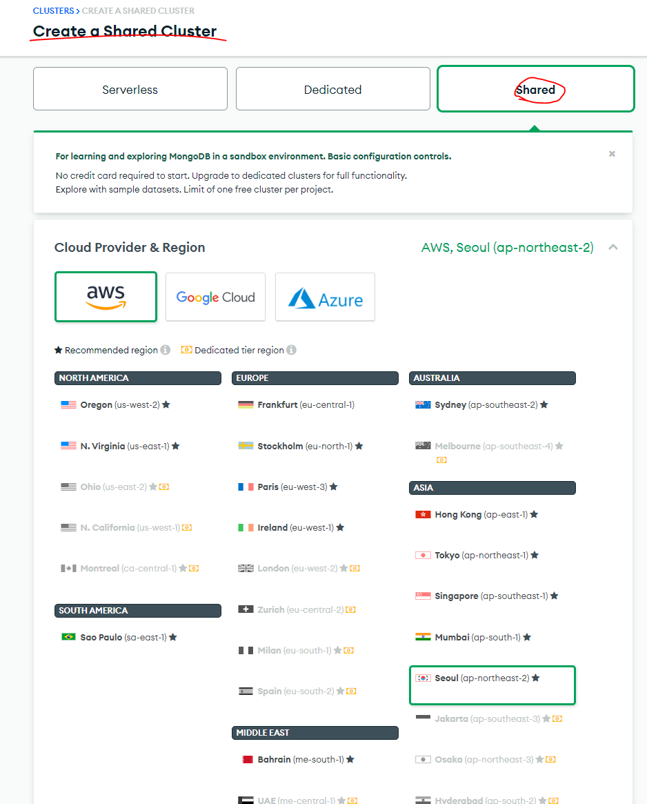 1. 몽고DB사이트에 들어가서 회원가입후 클러스터 create 클릭