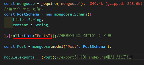 2. collection이름을 설정하려면 몽구스모델에서 아래부분을 바꿔주면 된다.