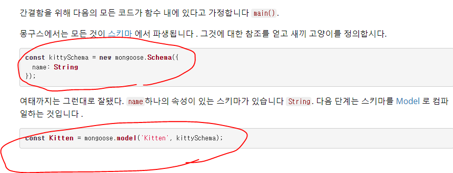 2. Mongoose 공식사이트에서 사용법을 가져온다.